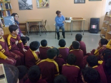 Las niñas y niños del 3° A del colegio Padre Luis Beltrán, disfrutaron del cuento "Rojo Corazón" de Saúl Schkolnik, a través de estas narraciones los niños se introducen en un mundo mágico lo que les permite desarrollar su imaginación y el placer por la lectura, además se entretuvieron con el cuento El Chacal y el Erizo autora Elena Gisbert, narrado en la modalidad Kamichibai un pequeño teatro de madera y láminas de cartón con llamativos dibujos que van construyendo una historia.
