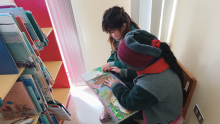 Visita guiada por las dependencias de la biblioteca pública municipal, a estudiantes de Primero y Segundo Básico del Colegio "Río Grande" de Caren, comuna de Monte Patria, acompañados de sus respectivas profesoras y asistentes de aula.