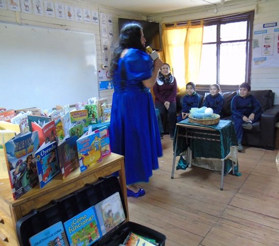 En esta oportunidad tuvimos el apoyo del Departamento de Educación con la tía cuenta cuentos señora Cristina Oviedo, narrando sus cuentos y también interactuando con los niños.