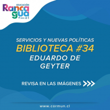 La Biblioteca Municipal #34 "Eduardo de Geyter" tiene nuevo Instagram. Acá estaremos publicándo nuestras distintas actividades y recibiendo mensajes de todas nuestras usuarias y usuarios. Telefonos: 72 2 238 544 / 72 2 236 513. Dirección: Av. Cachapoal #90. Correo Electronico : biblioteca34@cormun.cl