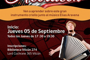 Ven aprender de este gran Instrumento criollo, inicio de clases, Jueves 05 de Septiembre desde las 17:30 a 17:30 horas, Inscripciones abiertas, Acércate a la biblioteca Municipal 274 de Vilcún... Gratuito