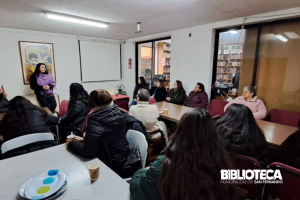 Durante la jornada de la mañana del martes 20 de agosto, se reunen en la sala de reuniones de la biblioteca las encargadas y usuarias del Programa Mujeres Jefas de Hogar para una sesión de retroalimentación de la feria de emprendedoras que se realiza en el contexto del día del niño en la Plaza de...
