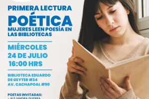Continuamos con nuestra gestión cultural de Biblioteca Eduardo de Geyter #34 de Rancagua. Esta vez te invitamos a la Primera lectura poética “Mujeres leen poesía en las Bibliotecas” donde nos acompañarán las autoras Alejandra Guerra, Valentina Oliva y Bárbara Donoso.Esta actividad...