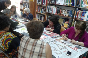 En nuestra Biblioteca todas las tardes de los días Viernes de 15:00 a 18:00 Hrs. se reúnen las integrantes de la “Organización Rescatando Nuestras Raíces”; donde realizan sus trabajos en distintas técnicas.