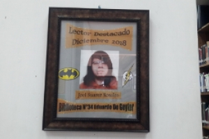Este mes en el “Cuadro de Honor” de la Sala de Circulación, se destaca al usuario Don Joel Suarez Rosales; como el mejor Lector del mes de Noviembre.