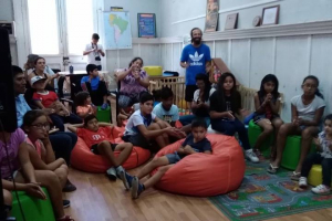 Grupo AKANA, realiza conversatorio musical en la biblioteca de Pisagua, para los alumnos de la escuela G49, junto a sus padres y apoderados.