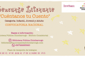 La I. Municipalidad de Chimbarongo a través de la Biblioteca Pública Municipal, con el propósito de estimular y motivar la creación literaria en escritores nacionales, invita a participar en el 10° Concurso Literario denominado “Cuéntanos tu Cuento”.1.- TEMA: Género narrativo mención cuento - con...