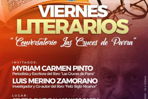 VIERNES LITERARIO, es una actividad desarrollada por Programa de Cultura de la Municipalidad de El Tabo con apoyo de la Biblioteca Publica N° 358 Las Cruces. Este viernes 7 la periodista Myriam Carmen Pinto autora del libro "Las Cruces Parra Siempre" y el investigador local Luis Merino...