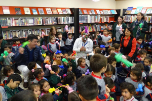 30 estudiantes del Kinder de la Escuela D-458, junto a sus tías, el día jueves 19 de abril, visitaron la Biblioteca para participar de entretenidas actividades de celebración del Día del Libro. En esta oportunidad escucharon un cuento sobre los animalitos de la granja y bailaron junto al Sr. Libro...