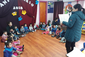 Se visito al Jardín Infantil ´´Tesorito´´ con el propósito de acercar la lectura a los pequeños a través de diferentes dinámicas como cuentos digitales y se les conto el Rey mocho en Kamishibai.