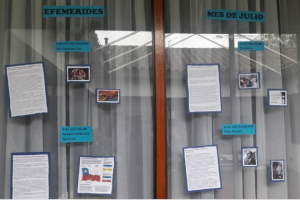 El Diario Mural de la Biblioteca informa las Efemérides correspondientes al Mes de Julio, donde se destaca el Día del Cuequero (a), Día del Periodista, Día de Nuestro Emblema Nacional y Natalicio de Pablo Neruda.