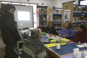 Bienvenida que le dan los adultos mayores de la versión 11 a la 12 del Programa Vínculos.Esta actividad se realizo en el Centro Vasco .Biblioteca La Granja
