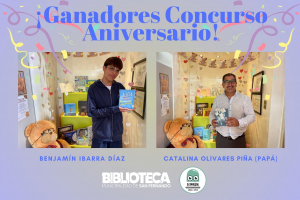 ¡Por fin tenemos a nuestros ganadores!Ambos ganadores hicieron el retiro de sus premios en la Biblioteca ¡Felicitaciones a Benjamín Ibarra Díaz y a Catalina Olivares Piña! Muchísimas gracias por participar y celebrar el aniversario 39 de la biblioteca con nosotros, y qué mejor que con una buena...