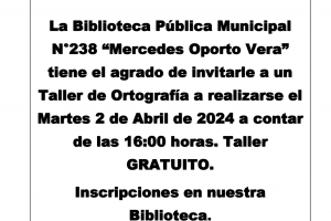 Mañana les esperamos a contar de las 16 horas para una nueva jornada de taller de ortografía GRATUITO.