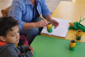 La Biblioteca Alfredo Wormald Cruz en Terreno Junto al Área Infantil, compartimos con los niños/as del Jardin Mis Primeros Pasos. De manera lúdica descubrieron, las exquisitas bondades de la Mozorca de Maíz (choclo. )