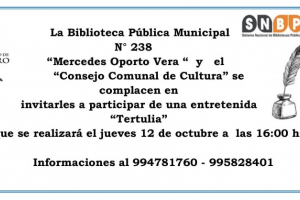 Iniciamos Octubre con nuestra acostumbrada Tertulia.Les esperamos el 12 de octubre. Todos y Todas invitados/as.