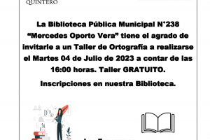 Mañana una nueva jornada de nuestro Taller de Ortografía a contar de las 16.00 Horas.¡Les esperamos!