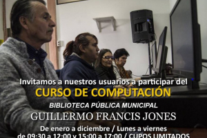 Nuevamente, como todos los años, ya se encuentran abiertas las inscripciones para los cursos de computación Básicas y Complementadas del programa BiblioRedes.La oferta actual incluye cursos de alfabetización digital, Word, Power Point, Excel y Redes Sociales, entre otros Te invitamos a que te...