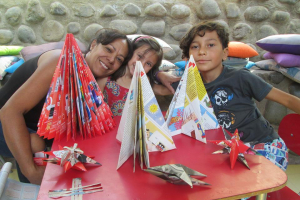 El viernes se realizó en la sala infantil el taller de arbolitos de pascua con materiales reciclados.