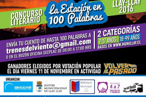 Los organizadores del Concurso Literario "La Estación en 100 Palabras": Servicio País Llay Llay, Programa de 4 a 7, Trenes del Viento, I. Municipalidad de Llay Llay y Biblioteca Pública 87, agradecen a todas las personas que participaron tanto de la categoría Infantil como Adulto de este Concurso....
