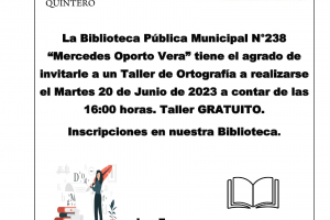 ATENCION!!! DESDE EL MES DE JULIO Y EN DEPENDENCIAS DE NUESTRA BIBLIOTECA PUBLICA COMIENZAN LOS NUEVOS TALLERES PARA LOS NIÑOS ,NIÑAS Y AADULTOS DE NUESTRA COMUNATE PUEDES INSCRIBIR A LOS NUMEROS DE BIBLIOTECA 72-2-501772