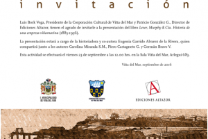 Comparto con ustedes esta invitación al Lanzamiento del libro Lever, Murphy & Cía. Historia de una empresa viñamarina ( 1883-1936), que tendrá lugar el