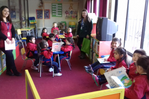 Cuentacuentos, actividad a la cual fueron invitados los niños y niñas del 2°A del Escuela Municipal "Valle de Mariquina", disfrutaron del cuento La sorpresa de Nandi de Eileen Browne, y del cuento El chacal y el erizo texto Elena Gisbert, narrado en la modalidad del Kamishibai un pequeño...