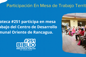 En esta semana se llevó a cabo, en el CDC Oriente, la "Mesa de Trabajo Territorial" para los dirigentes de las Juntas de Vecinos del Sector. En estas actividades, la Biblioteca #251 se ha hecho partícipe con la finalidad de contribuir y difundir a los participantes sobre el funcionamiento y...