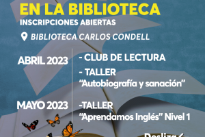 Te invitamos a revisar los talleres disponibles en la biblioteca para el año 2023 y los talleres de biblioredes durante el primer trimestre.Taller de Autobiografía y sanación: La monitora (psicóloga) los llevará a un recorrido desde su infancia hasta tiempos presentes donde los participantes podrán...