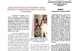 Como una forma de acercar aún más a la comunidad la información de las actividades de la Biblioteca, se ha creado un Boletín digital que es enviado mediante e-mail a los contactos directos de la entidad, como también subido a las redes sociales para hacer más fácil el acceso. El semanario ya lleva...