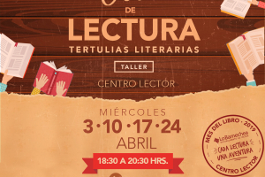 Tertulias literarias Fecha: miércoles 3, 10, 17 y 24 de abril / 8, 15, 22 y 29 de mayo / 5, 12, 19 y 26 de junioLugar: Centro Lector de Lo Barnechea. Av. Lo Barnechea 1174, esquina Cuatro Vientos.Contacto: centrolector@lobarnecheacultura.cl / 22 754 38 20Horarios: 18:30 a...