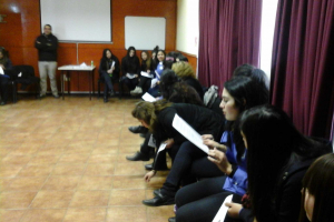 2° Sesión de Taller de Cuentacuentos Para alumnas de 3° y 4° medio de la carrera de párvulo en esta sesión se realizaron dinámicas, juegos de expresión corporal, improvisación y selección de material infantil para representación de los cuentos
