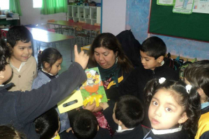 Visita al kinder del colegio Los Nogales Villa Tijeral Compartiendo el Libro :La Gallina Y sus pollitos de Sabrina Gamito y Luciana Cavagnola.