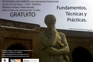 Junto con saludarlos, quisiéramos invitarlos a participar del taller de fotografía documental que se realizara en la Biblioteca Pública Pablo Neruda entre los días 26 al 29 de mayo. En este taller se veran fundamentos, técnicas y prácticas de la fotografía documental con orientación...
