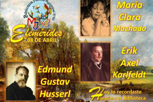 1859 Nace Edmund Gustav Albrecht Husserl, filósofo alemán iniciador de la corriente filosófica fenomenología, una de las tendencias más vigorosas en la filosofía contemporánea. Su primer libro fue Filosofía de la aritmética . 1921...