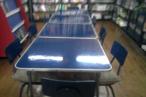 Hermosamente quedaron nuestra mesas y estanterías, después de pintarlas de un hermoso color azul....Invitamos a todos nuestros usuarios a conocerlas...