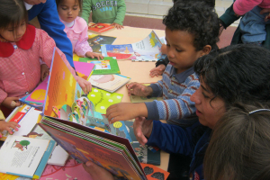El viaje comienza en el jardín Infantil Pillin y Parole, donde la biblioteca se presentó con una muestra de libros infantiles, el cuenta cuentos y el servicio de Cajas Viajeras.