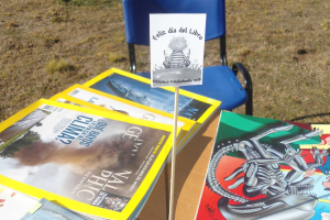 Con una exposición de libros en la plaza de la localidad celebramos el día del libro y el derecho de autor invitando a las instituciones a participar de esta actividad