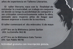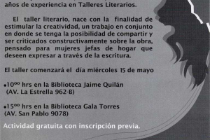 El taller literario, nace con la finalidad de estimular la creatividad, un trabajo en conjunto en donde se tenga la posibilidad de compartir y ser criticados constructivamente sobre la obra, pensado para mujeres jefas de hogar que deseen expresar a través de la escritura.