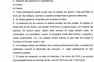 Concurso Infantil Literario Regional, al que podrán participar alumnos de enseñanza Básica y Media, residentes en la región del Libertador Bernardo O"higgins, el plazo de recepción se abrió el 2 de enero y se cerrará el domingo 30 de Junio 2013 a las 17:00 hrs.