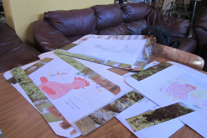 Todos los días viernes del mes de Noviembre, de las 14:30 horas, con niños de la escuela F-866 de Tirúa se están confeccionando láminas con material reciclado para el Teatro de Papel Kamishibai , pintado , recortando y pegando.
