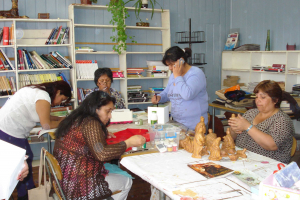 Desde hace dos años, en Biblioteca se realizan talleres de manualidades destinados a señoras del sector. A través de ellos, han aprendido diversas técnicas de decoupage, tejido a telar, pintura en yeso, entre otros, los que han sido de gran ayuda porque han permitodo incrementar el ingreso familiar.
