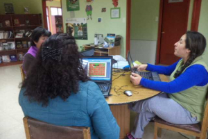 Paola Merino encargada de Biblioredes de la comuna de Los Sauces a la cual pertenece Villa Trintre realizo cursos de power point y publisher a dueñas de casa y niños de la localidad.