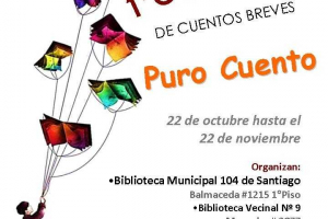 La Biblioteca Vecinal N° 9 en el marco del proceso de Extensión Cultural, invita a todos sus vecinos a participar en el 1° Concurso de Cuentos Breves "Puro Cuento", organizado por la Biblioteca Pública Municipal 104 de la I. Municipalidad de Santiago.La convocatoria del consurso, se inicia el 22 de...