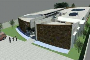 La imagen muestra la maqueta de la futura Biblioteca y Radio Orolonco.