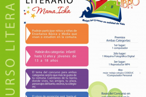 Estimados amigos les invitamos a participar de nuestro concurso literario MAMA ICHA con motivo de nuestra 9° feria del Libro, podrán participar de enseñanza básica y media que vivan o estudien en la comuna, habrán dos categorías una infantil hasta 12 año y otra juvenil hasta 18 años, el tema del...