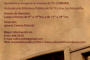 Te invitamos a participar del proyecto Álbum fotográfico de Til Til: nuestra historia recorre la comuna, cuyo objetivo es conservar y difundir el patrimonio cultural de Til Til, creando un archivo fotográfico que...
