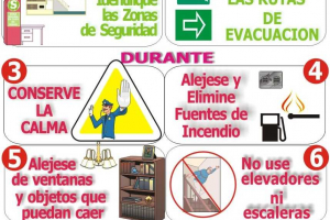 Consejos de utilidad en caso de SISMOS.ANTES:- Identifique las Zonas de Seguridad- Localice las Rutas de EvacuaciónDURANTE:- Conserve la calma- Aléjese y elimine fuentes de incendio- Aléjese de ventanas y objetos que puedan caer- No use elevadores ni escalerasDESPUÉS:- Ayude en lo posible, de lo...