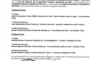 Acta Ganadores del IX Concurso Literario de Poesía y Prosa Para Adultos "Gonzalo Rojas Pizarro"