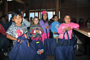 Como buenos vecinos, tenemos que apoyarnos y protegernos, expresó Sergio García, Gerente de Administración y Finanzas de Salmones Friosur y de Piscícola Hornopirén, al inicio de la ceremonia de entrega de los útiles escolares a los niños, niñas y jóvenes de la comunidad indígena Rupulafken.